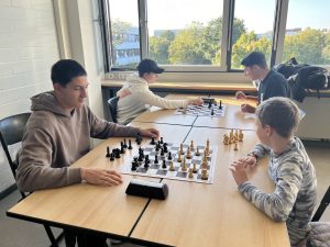 Već u sljedećem kabinetu čekalo nas je sve spremno za jednu partiju šaha. Igranje šaha kod učenika potiče razvoj kritičkog mišljenja, koncentracije i sposobnosti donošenja odluka. Kroz šah učenici uče strpljenje, strategiju i planiranje unaprijed, što im pomaže u rješavanju problema u svakodnevnom životu. Također, šah poboljšava njihove kognitivne vještine i povećava kreativnost, što pozitivno utječe na školski uspjeh i osobni razvoj. U našoj školi smo u više navrata organizirali šahovsko odmjeravanje snaga zahvaljujući kolegi Paviću, ali kao redovitu aktivnost u školi, šah nemamo.