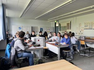 Tijekom našeg boravka, imali smo priliku posjetiti različite razrede i upoznati se s inovativnim metodama rada. Naš fokus je bio na tri područja našega projekta: inkluzivno obrazovanje, projektna nastava i upravljanje stresom. Jedan od najljepših trenutaka dogodio nam se baš u razredu u kojem je bio odrđeni broj učenika s teškoćama, a koji su nas srdačno dočekali uz smijeh i pitanja o poznatim hrvatskim nogometašima. Bilo je izuzetno zanimljivo vidjeti kako nastavnici upravljaju takvim razredom i kako se inkluzivno obrazovanje provodi u praksi. Inače, u Njemačkoj je nešto drugačiji sustav obrazovanja kada je riječ o inkluziji, nego kod nas. Naime, Škola u određenom trenutku, najčešće kod prelaska u više razrede, daje procjenu može li pojedino dijete nastaviti redovito pratiti nastavne procese ili mora mijenjati obrazovni program. Znači, u nižim razredima jako se radi na uključivosti djece, no ukoliko se uoči da je djetetu naporno pratiti program, da ishodi ne zadovoljavaju, Škola učenika isključuje i upućuje u druge škole s manje zahtjevnim programima prilagođenim sposobnostima tog djeteta. Škola donosi konačnu odluku i želje i ponekad nerealni stavovi roditelja se ne uvažavaju. Zadnju riječ ima stručna procjena Škole. Sustav je zamišljen na način da se omogući primjeren rad s djetetom koji treba dodatnu pozornost i pažnju stručnjaka u Školi koja ima mogućnosti za to i čiji je program prilagođen, a s druge strane da se “jače” Škole, koje nude zahtjevnije programe, mogu posvetiti učenicima koji te programe mogu pratiti. Jako se pazi da se ne zapostave nadareni učenici, već da se i tim učenicima, koji također spadaju u skupinu djece s posebnim potrebama, njihove potrebe za dodatnim angažmanom i radom primjereno zadovolje. Ovaj princip nam se jako svidio jer smo svjedoci kako u hrvatskim školama nastvnici jednostavno nemaju dovoljno ni vremena, ni resursa, ni podrške da se posvete nadarenim učenicima, često su zakinuti i redoviti učenici jer se u razredima povećao broj djece s cijelim spektrom poteškoća koji trebaju neprestanu podršku. S druge strane, na snazi je zabrana zapošljavanja u sustavu, školama se ne dopušta zapošljavanje stručnog kadra, škole vape za psiholozima, defektolozima, socijalnim pedagozima, asistentima koji bi pružili kvalitetnu podršku i pomoć nastavniku. Na ovom satu u Njemačkoj uočili smo kako su u učionici cijelo vrijeme uz nastavnika kao podrška asistent i defektologinja, što je omogućilo individualiziraniji i učinkovitiji pristup svakom učeniku. Ovaj nastavni sat bio je potvrda naših razmišljanja koliko je važno imati sustavnu podršku u inkluzivnim razredima i kako kvalitetna stručna pomoć može značajno olakšati rad nastavnika te poboljšati ishode učenja za sve učenike.