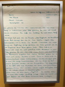 Odmah pored je kufer pun dokumenata i uspomena. To je sve što je ostalo od židovske obitelji iz Regensburga. Kufer je sačuvala žena koja je kod njih radila. Ona je dodala pisma koja je obitelj pisala iz geta, dok nije ubijena.